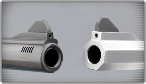More importantly, this new set-up is readily machined into our custom Smith & Wesson and octagonal single-action barrels (see photo). It is also compatible with the L-frame and SP-style double-action barrels we produce. While we have modified the factory front-sight installations on Ruger Blackhawk barrels, appearance isn’t the best so this is not currently a likely offering. As a general observation, the installation may be performed on certain S&W barrels with integral blades.